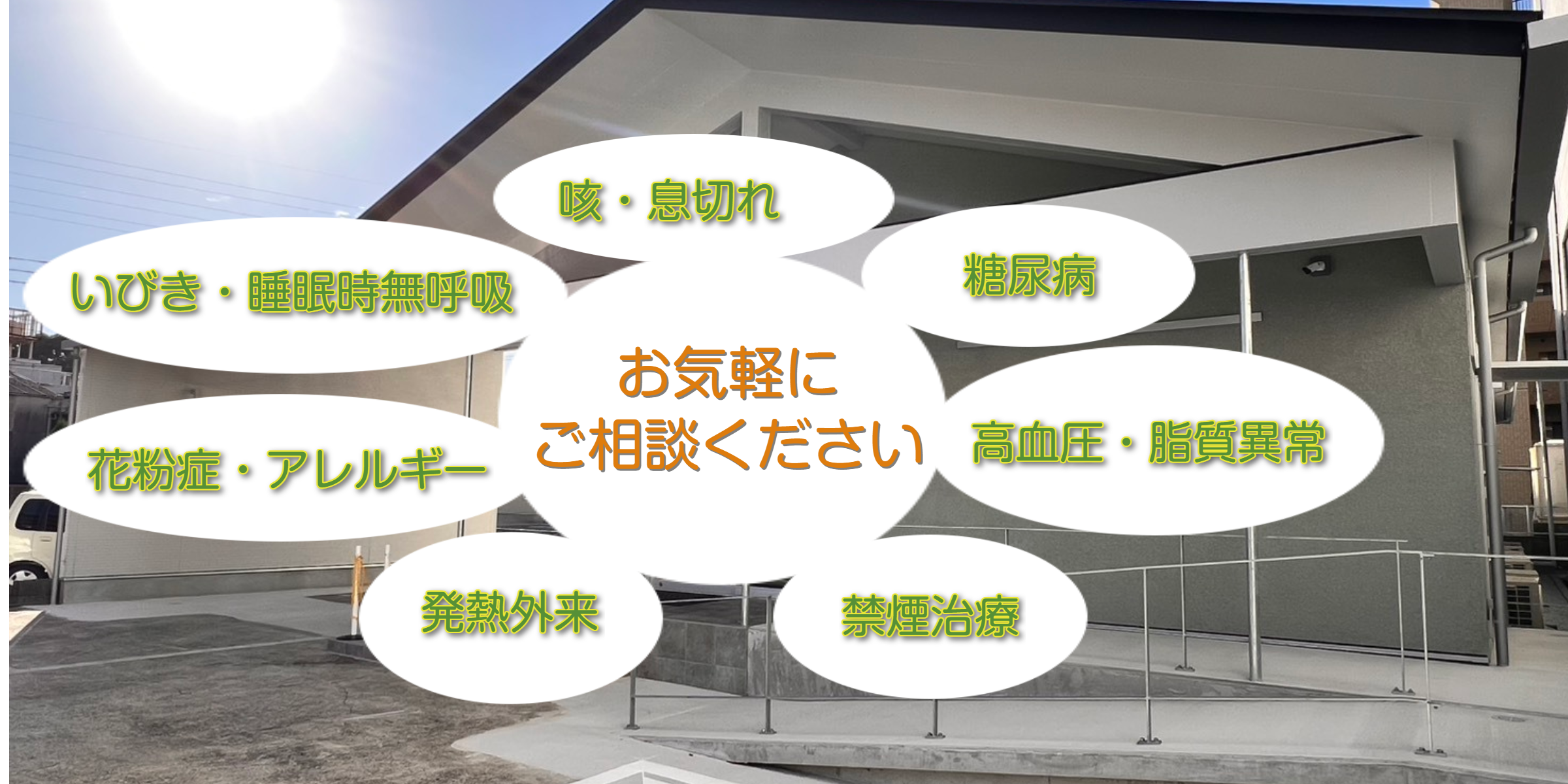 当院は、呼吸器疾患や糖尿病の専門的診療と同時に、内科疾患全般を幅広く診療いたします。分かりやすい説明で、安心の医療の提供を目指します。CT検査も可能です。まずはお気軽にご相談ください。