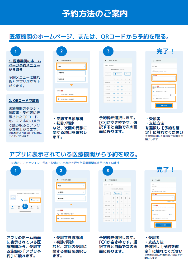 2.Web利用:アプリのインストールなしでも、スマホ・PCから予約、問診、決済等をご利用いただけます。