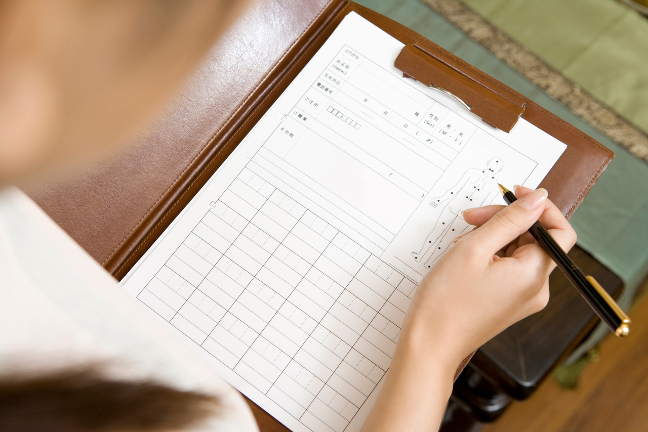 初診で事前問診の入力がまだの方は、問診表をお渡ししますので、ご記入いただき、受付へお渡し下さい。